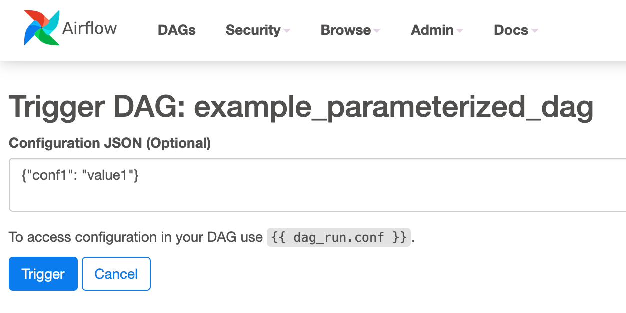 A similar editor would be helpful on the DAG trigger screen.  ---------------------------------------------------------------- This is an automated message from the Apache Git Service. To respond to the message, please log on to GitHub and use the URL above to go to the specific comment. For queries about this service, please contact Infrastructure at: [email protected]