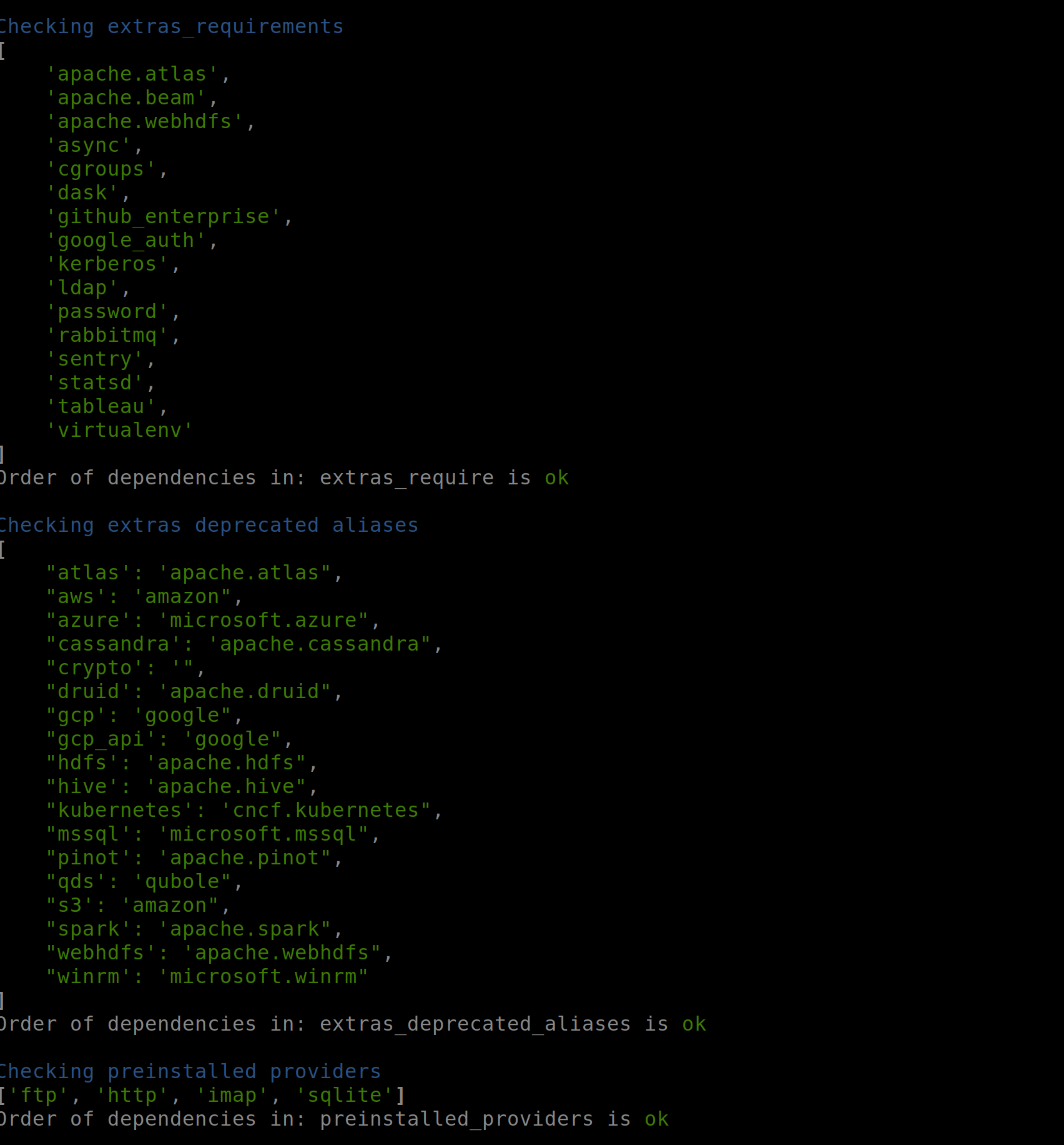 Another part of this change is vastly enriched output of 'setup-order' pre-commit. It will not only check everything for order but also will print what is being checked. I found out that several lists were wrongly ordered because some regular expressions were "stopping" comparison when there was '[" as part of requirement (so anything behind requirements with extras could be unsorted). Now you can see exactly what is being checked. You can try yourself by: ``` pre-commit run setup-order -v --all-files ```  ---------------------------------------------------------------- This is an automated message from the Apache Git Service. To respond to the message, please log on to GitHub and use the URL above to go to the specific comment. For queries about this service, please contact Infrastructure at: [email protected]