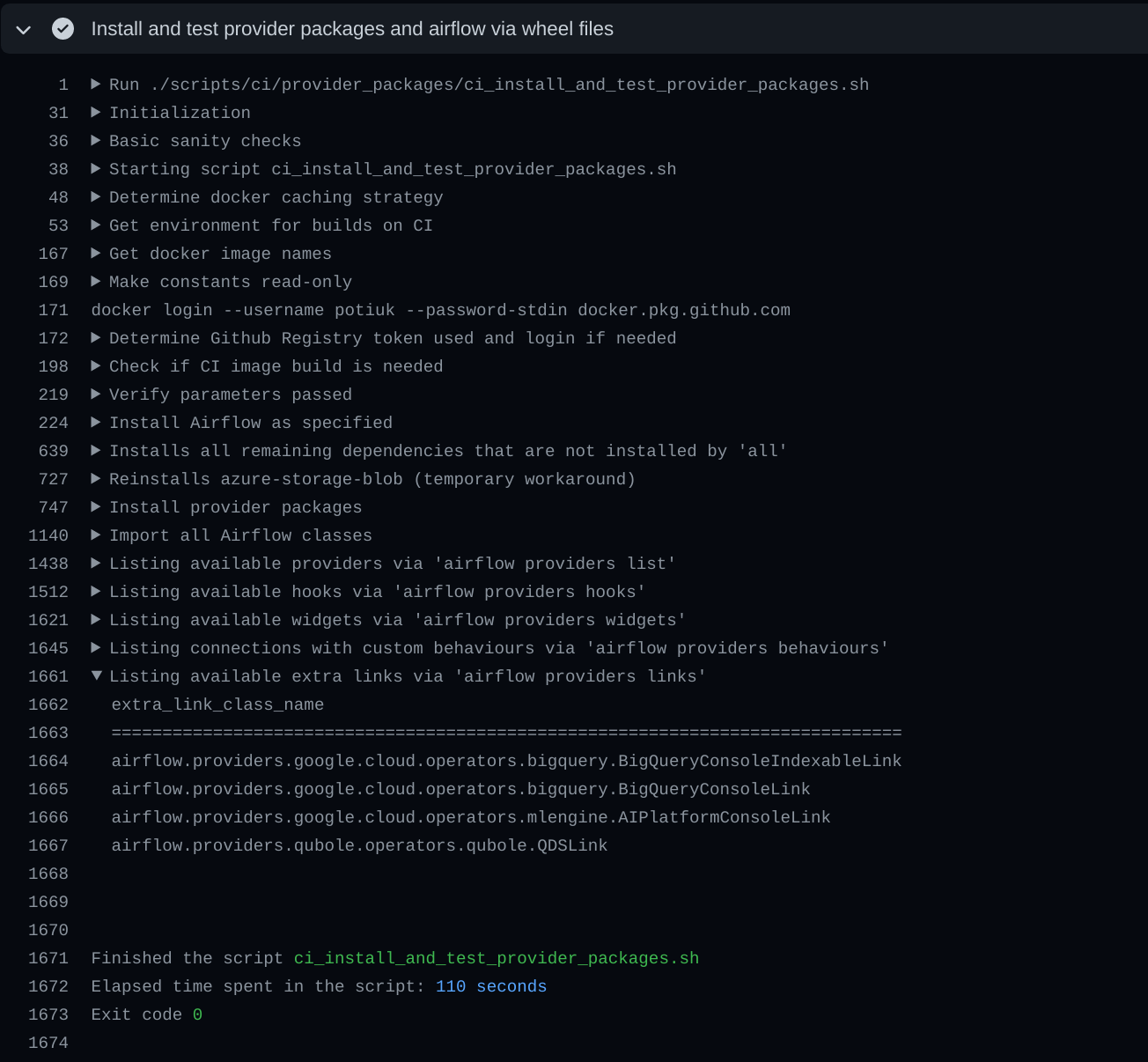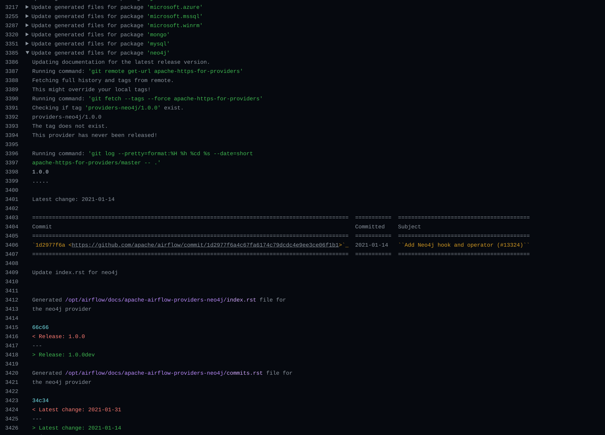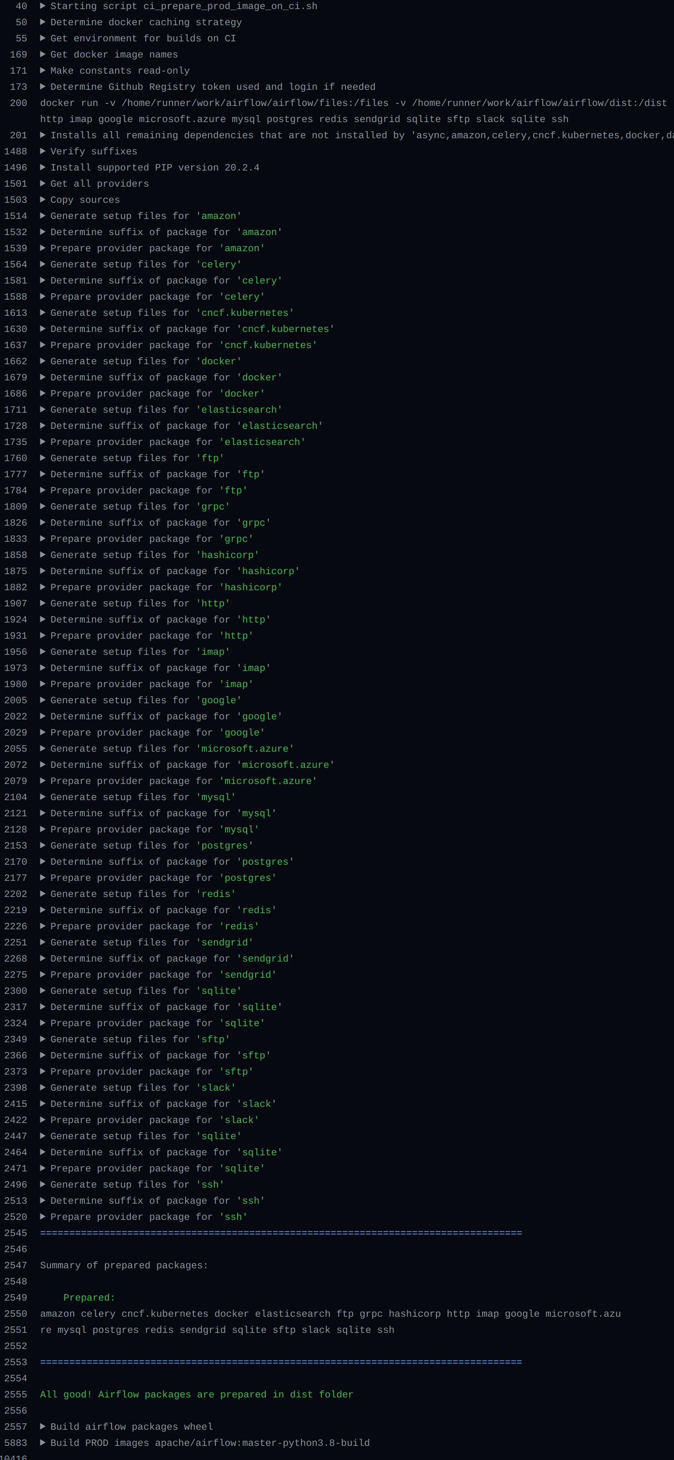 Hey @kaxil @ash @mik-laj - I got - I think - final version of the provider PR finally working and green. It will fail here because it needs to be merged to MASTER to succeed but I got it running and "green" in my own fork here: https://github.com/potiuk/airflow/actions/runs/525666213 The output is now sooo much nicer and shows exactly what's going on so that it is easy to grasp it. The logs are nicely folded in groups and all is colored. Also errors are much better visible, red and pop-out immediately. Some screenshots are taken from the CI job, but similar output you get as release manager when you are running ./breeze commands to see how many of the packages need version bump: Building PROD image using provider packages:  You can see that first all provider packages are built, then the main airflow package and the PROD image is built using those provider packages (by unfolding each package build you can see exact commands in each of the steps for each package: * generating setup files * checking if suffixes are fine * building the package Preparing provider documentation: You can see an example output genmerated by new neo4j proivider (fresh provider):  Similar output for packages that had some changes but their version has not been updated:  And another one when when the version is already updatead and package is ready for release:  We also build and test ALL provider packages in the CI build separately (in PROD image build we only build a subset of those :  In the "regular" provider's package. We install all the providers, see if everything can be imported and we test all `airflow providers` command to see if everything is good:  For Backport providers we just check if the backport providers can be installed in latest 1.10.* released (1.10.14 now):  ---------------------------------------------------------------- This is an automated message from the Apache Git Service. To respond to the message, please log on to GitHub and use the URL above to go to the specific comment. For queries about this service, please contact Infrastructure at: [email protected]