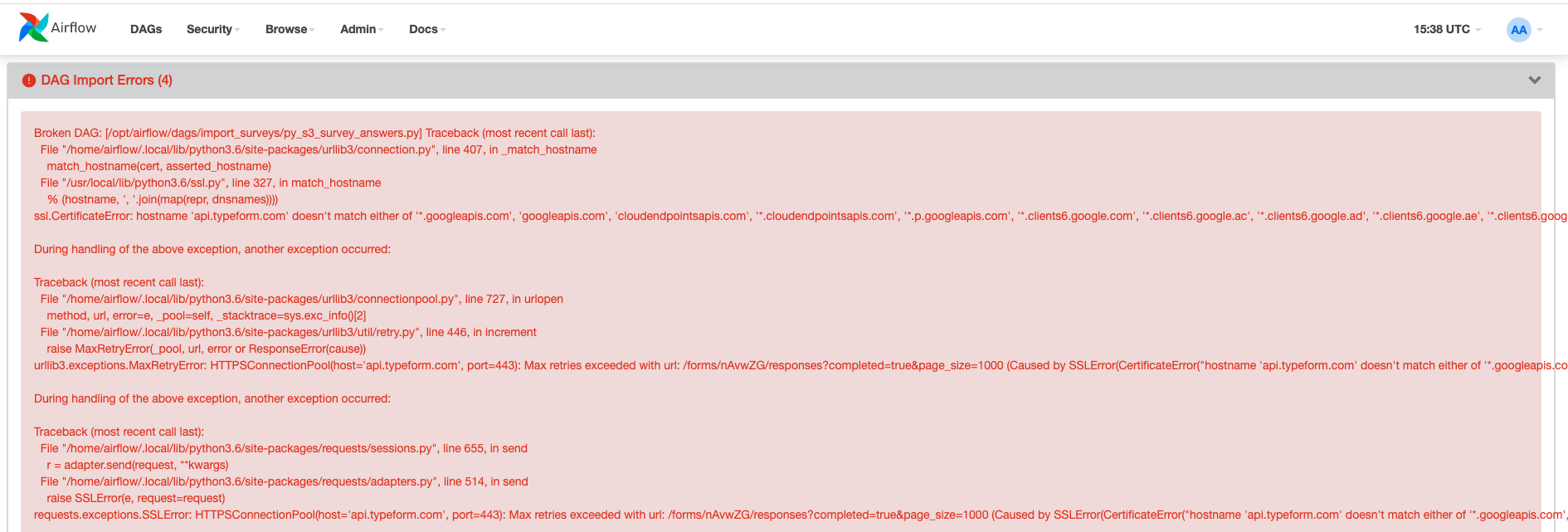 I have upgraded the Dockerfile to 2.1.0, made `docker system prune -af` and `airflow db reset` as well as `airflow db init` several times. I don't have anymore the error in the first post, but I do have one very similar:  And the DAG works perfectly fine: ![Uploading Captura de pantalla 2021-05-26 a las 17.38.24.png…]() -- This is an automated message from the Apache Git Service. To respond to the message, please log on to GitHub and use the URL above to go to the specific comment. For queries about this service, please contact Infrastructure at: [email protected]