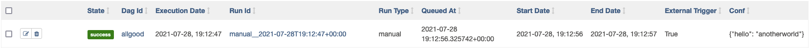 The DagRun `conf` is displayed on the DagRun list (under "Browse -> Dag