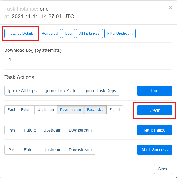 But when I click on ``Instance Details`` or ``Clear`` in the UI, the