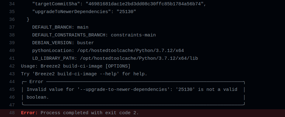 @potiuk another thing I found is with the env variable **UPGRADE_TO_NEWER_DEPENDENCIES**, it is setting a random number.  [job](https://github.com/edithturn/airflow/runs/5370490394?check_suite_focus=true) It is because I am **pushing** the code and, It falls into this validation. https://github.com/apache/airflow/blob/82e1abf7144f5386cb9dbf9775e9c78da51ec673/scripts/ci/selective_ci_checks.sh#L45-L54 It should not fail when it is random number (I saw it in one of your executions: https://github.com/potiuk/airflow/runs/5344689690?check_suite_focus=true), so I have to find a way to continue the process if this value is random, right? I must be setting the variable to boolean yes or yes somewhere, and that is why it fails. Could you please confirm that? -- This is an automated message from the Apache Git Service. To respond to the message, please log on to GitHub and use the URL above to go to the specific comment. To unsubscribe, e-mail: [email protected] For queries about this service, please contact Infrastructure at: [email protected]