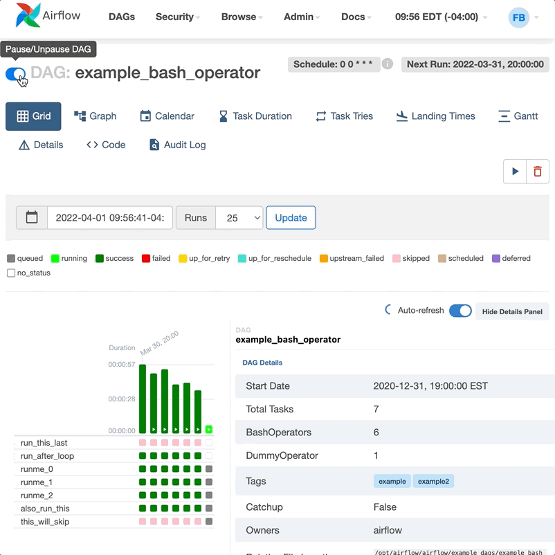 Add a new event dispatch when pausing/unpausing a dag for Grid view to listen to. This will disable/enable autorefresh as needed and include a title tooltip explaining to a user when autorefresh is disabled. <img width="817" alt="Screen Shot 2022-04-01 at 9 56 05 AM" src="https://user-images.githubusercontent.com/4600967/161280502-8afa7a29-b4f1-4d23-9977-2516715e18f6.png">  --- **^ Add meaningful description above** Read the **[Pull Request Guidelines](https://github.com/apache/airflow/blob/main/CONTRIBUTING.rst#pull-request-guidelines)** for more information. In case of fundamental code change, Airflow Improvement Proposal ([AIP](https://cwiki.apache.org/confluence/display/AIRFLOW/Airflow+Improvements+Proposals)) is needed. In case of a new dependency, check compliance with the [ASF 3rd Party License Policy](https://www.apache.org/legal/resolved.html#category-x). In case of backwards incompatible changes please leave a note in [UPDATING.md](https://github.com/apache/airflow/blob/main/UPDATING.md). -- This is an automated message from the Apache Git Service. To respond to the message, please log on to GitHub and use the URL above to go to the specific comment. To unsubscribe, e-mail: [email protected] For queries about this service, please contact Infrastructure at: [email protected]