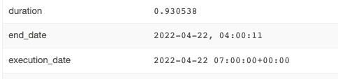 ### Apache Airflow version 2.2.5 (latest released) ### What happened  When in reality it just ran less than a second  ### What you think should happen instead Duration should denote the task took less than 1 second ### How to reproduce _No response_ ### Operating System Debian GNU/Linux 11 (bullseye) ### Versions of Apache Airflow Providers N/A ### Deployment Astronomer ### Deployment details `based on Airflow 2.2.5` ### Anything else _No response_ ### Are you willing to submit PR? - [ ] Yes I am willing to submit a PR! ### Code of Conduct - [X] I agree to follow this project's [Code of Conduct](https://github.com/apache/airflow/blob/main/CODE_OF_CONDUCT.md) -- This is an automated message from the Apache Git Service. To respond to the message, please log on to GitHub and use the URL above to go to the specific comment. To unsubscribe, e-mail: [email protected] For queries about this service, please contact Infrastructure at: [email protected]
