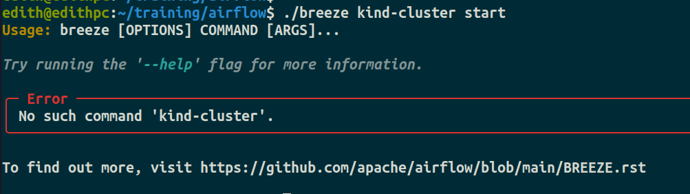 @potiuk I understand, could I start with this one ./breeze kind-cluster start  I will check how kind is working with Breeze legacy and then try to make it with the breeze. -- This is an automated message from the Apache Git Service. To respond to the message, please log on to GitHub and use the URL above to go to the specific comment. To unsubscribe, e-mail: [email protected] For queries about this service, please contact Infrastructure at: [email protected]
