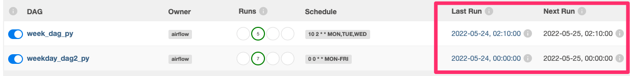 same - what time the DAG run starts. It will show what time the next DAG Run