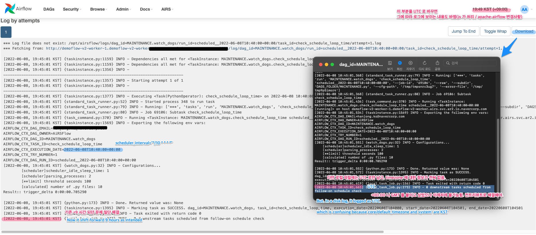 datefmt on logging.Filter. but regex in airflow/www/static/js/ti_log.js