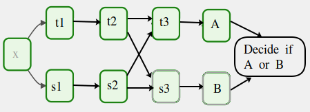 > If there is a condition of which downstream task can be skipped then place `ShortCircuitOperator` to achieve that. What i'm looking for is a condition of which _upstream_ tasks that can be skipped :) The deciding task must still be run first of course, sortof like the "configure" stage of a build-system. Excuse my paint-skills, imagine following (this is not the same dag as my code from OP):  Here if one decides that A is the desired outcome, then all of x+s1+s2+t1+t2+t3 must be run, but s3 can be skipped. With the BranchOperator, one must run both of the tracks completely, because otherwise there is no way to get s2 into t3, if i'm not mistaken. This is the most simple case, real world dag dependencies can be a lot more complex than that. I don't have experience with the `ShortCircuitOperator`, will look into it a bit more to understand better. -- This is an automated message from the Apache Git Service. To respond to the message, please log on to GitHub and use the URL above to go to the specific comment. To unsubscribe, e-mail: [email protected] For queries about this service, please contact Infrastructure at: [email protected]