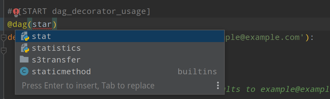 In my Intellij Dag does not work:  While task works:  -- This is an automated message from the Apache Git Service. To respond to the message, please log on to GitHub and use the URL above to go to the specific comment. To unsubscribe, e-mail: [email protected] For queries about this service, please contact Infrastructure at: [email protected]