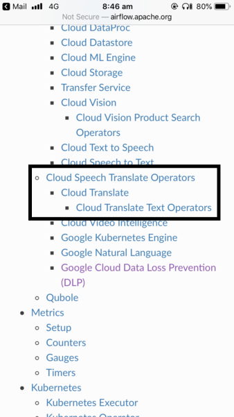 ryanyuan commented on issue #5999: [AIRFLOW-XXX] Fix incorrect GCP integration sections URL: https://github.com/apache/airflow/pull/5999#issuecomment-528661987 I found this issue when I was browsing this airflow doc using my mobile. See screenshot below:  I don't use this page quite often now because I would just jump into the code to see the usages of operators and hooks. But I remember when I just started using Airflow, I always looked at the docs to find what parameters should I parse to the operators and hook. It's true that we don't maintain this page well enough and up-to-date. But I like your idea that replacing the operators' links with the package link. And it is also important that make the integration doc more consistent across every module. For example, some AWS and Azure integration docs provide a link to the specific hook while GCP integration docs only give links to operators. @mik-laj