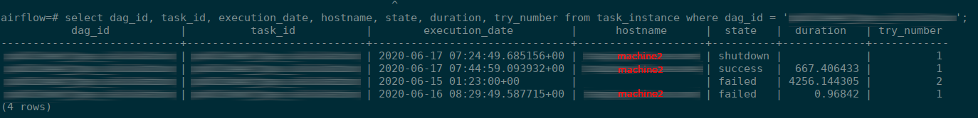**Apache Airflow version**: 1.10.10 **Environment**: - **Cloud provider or hardware configuration**: - **OS** (e.g. from /etc/os-release): `Debian GNU/Linux 9 (stretch)` - **Kernel** (e.g. `uname -a`): `Linux <redacted> 4.9.0-3-amd64 #1 SMP Debian 4.9.30-2+deb9u5 (2017-09-19) x86_64 GNU/Linux` **What happened**: A task got executed and failed, but the execution logs are inaccessible from the UI.  ``` $ cat /var/log/airflow/<dag_id>/<task_id>/2020-06-15T01\:23\:00+00\:00/1.log ... <application logs here. no raised exceptions> [2020-06-22 20:15:35,141] {logging_mixin.py:112} INFO - [2020-06-22 20:15:35,091] {local_task_job.py:103} INFO - Task exited with return code -9 ``` **What you expected to happen**: Execution logs should be available on the UI. **How to reproduce it**: In our case it was an [OOM error](https://stackoverflow.com/a/18529453), but maybe any unhandled error can be used to reproduce a crash, or perhaps even issuing a `kill -9` on the process running the task could reproduce the issue. **Anything else we need to know**: 1. I found this issue that helped me to understand the error: https://issues.apache.org/jira/browse/AIRFLOW-4922 2. Our current setup: - **machine1** running `airflow-webserver`, `airflow-scheduler`, `airflow-worker` - **machine2** running `airflow-worker` The task is set to be executed on **machine2** 3. These are the task instances currently on the airflow metadata database:  We can see in the image that the one which took the most duration time and eventually got killed by OOM is also the one without a `hostname` set. ---------------------------------------------------------------- This is an automated message from the Apache Git Service. To respond to the message, please log on to GitHub and use the URL above to go to the specific comment. For queries about this service, please contact Infrastructure at: [email protected]