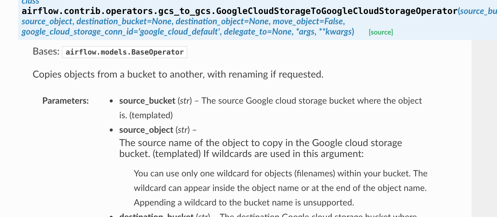 kaxil opened a new pull request #4054: [AIRFLOW-XXX] Fix GCS Operator docstrings URL: https://github.com/apache/incubator-airflow/pull/4054 The circled part needs to be fixed. This PR fixes it.  Also, it fixes the below part:  Make sure you have checked _all_ steps below. ### Jira - [x] My PR addresses the following [Airflow Jira](https://issues.apache.org/jira/browse/AIRFLOW/) issues and references them in the PR title. For example, "\[AIRFLOW-XXX\] My Airflow PR" ### Description - [x] Here are some details about my PR, including screenshots of any UI changes: ### Tests - [x] My PR adds the following unit tests __OR__ does not need testing for this extremely good reason: ### Commits - [x] My commits all reference Jira issues in their subject lines, and I have squashed multiple commits if they address the same issue. In addition, my commits follow the guidelines from "[How to write a good git commit message](http://chris.beams.io/posts/git-commit/)": 1. Subject is separated from body by a blank line 1. Subject is limited to 50 characters (not including Jira issue reference) 1. Subject does not end with a period 1. Subject uses the imperative mood ("add", not "adding") 1. Body wraps at 72 characters 1. Body explains "what" and "why", not "how" ### Documentation - [x] In case of new functionality, my PR adds documentation that describes how to use it. - When adding new operators/hooks/sensors, the autoclass documentation generation needs to be added. ### Code Quality - [x] Passes `flake8`
