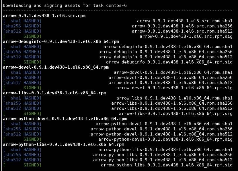 9acc696a <Phillip Cloud> ARROW-2934: Add checksums creation to sign