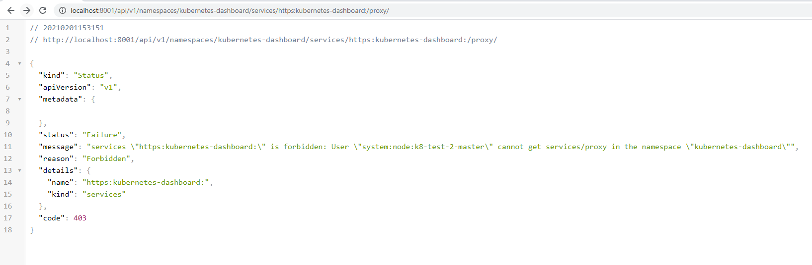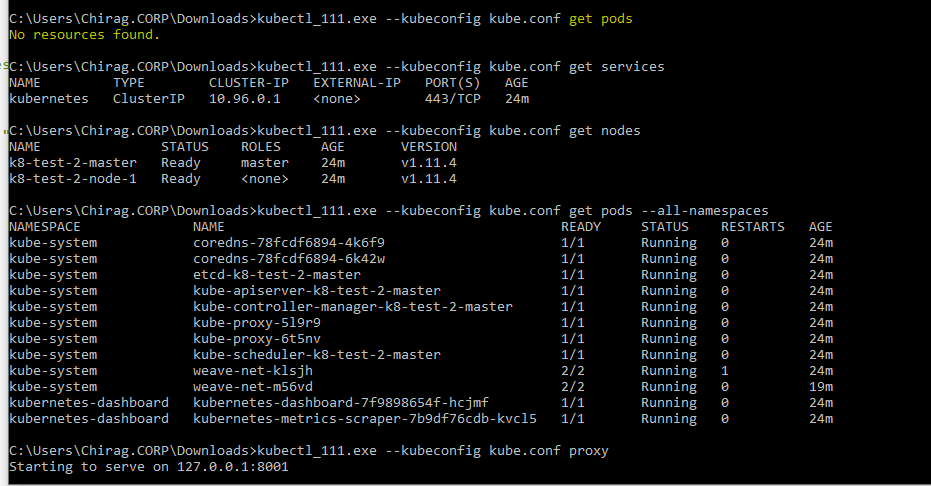 After further digging... I logged into the master node using SSH via Private Key, downloaded the /etc/kubernetes/kubectl.conf and saved it locally as kube.conf I ran a few commands. However, the Dashboard is still not visible. I saw the Issue #4146 It mentions about running -- curl -k on management server I think -- However in my case, management server is on a separate VLAN and the users will never have that kind of access. I ran the curl command inside the master node, and it does look like a certificate issue.. see screenshot below. I do not know what else to check. At this point, this is a show stopper for using Kubernetes Service for us, and is a critical bug in my opinion. I hope there is some workaround (that continues to work when new clusters get created)!!!    ---------------------------------------------------------------- This is an automated message from the Apache Git Service. To respond to the message, please log on to GitHub and use the URL above to go to the specific comment. For queries about this service, please contact Infrastructure at: [email protected]