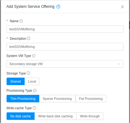 While creating any system offering of type SSVM or CPVM or domain router from UI, the underlying API called is always with "systemvmtype" as domainrotuer. Following is the screenshot of system offering creation with System VM type "Secondary Storage VM"  Here is the system offering created with type domainrouter.  API captured for this operation. {"createserviceofferingresponse":{"serviceoffering":{"id":"b761ad41-1b66-4475-b261-38ab3c697f47","name":"testSSVMoffering","displaytext":"testSSVMoffering","cpunumber":1,"cpuspeed":1000,"memory":1024,"created":"2021-02-11T09:37:50+0000","storagetype":"shared","provisioningtype":"thin","offerha":false,"limitcpuuse":false,"isvolatile":false,"issystem":true,"defaultuse":false,"systemvmtype":"domainrouter","iscustomizediops":false,"miniops":0,"maxiops":0,"iscustomized":false,"cacheMode":"none","rootdisksize":0,"dynamicscalingenabled":true}}} ##### ISSUE TYPE <!-- Pick one below and delete the rest --> * Bug Report * Improvement Request * Enhancement Request * Feature Idea * Documentation Report * Other ##### COMPONENT NAME <!-- Categorize the issue, e.g. API, VR, VPN, UI, etc. --> ~~~ ~~~ ##### CLOUDSTACK VERSION <!-- New line separated list of affected versions, commit ID for issues on master branch. --> ~~~ ~~~ ##### CONFIGURATION <!-- Information about the configuration if relevant, e.g. basic network, advanced networking, etc. N/A otherwise --> ##### OS / ENVIRONMENT <!-- Information about the environment if relevant, N/A otherwise --> ##### SUMMARY <!-- Explain the problem/feature briefly --> ##### STEPS TO REPRODUCE <!-- For bugs, show exactly how to reproduce the problem, using a minimal test-case. Use Screenshots if accurate. For new features, show how the feature would be used. --> <!-- Paste example playbooks or commands between quotes below --> ~~~ ~~~ <!-- You can also paste gist.github.com links for larger files --> ##### EXPECTED RESULTS Creating System offering from UI should create with provided system vm type ##### ACTUAL RESULTS Creating System offering from UI always creates with domainrouter type irrespective of provided type ---------------------------------------------------------------- This is an automated message from the Apache Git Service. To respond to the message, please log on to GitHub and use the URL above to go to the specific comment. For queries about this service, please contact Infrastructure at: [email protected]