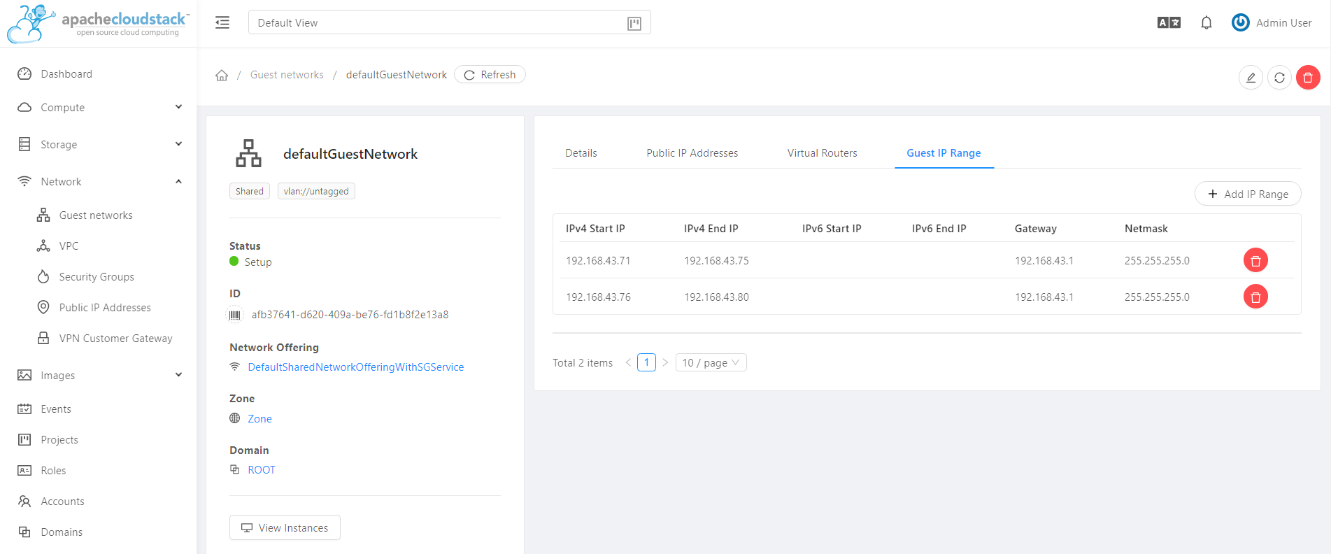 @ccycv I added a new guest IP range using the UI, but I was not able to create any instances that use the IP range. I checked the DB and saw that the 2 IP ranges use different vlan_db_ids - So when the first range was exhausted, I expected the second range to be used, but instead, I got the insufficient capacity error - This is possibly a bug. I tried to reproduce this error on a basic network without success - meaning - I can't create an instance on a different IP range so I can't test the described scenario, I will try an advanced network next.  @NuxRo just to be sure, is this what you meant with multiple CIDRs? -- This is an automated message from the Apache Git Service. To respond to the message, please log on to GitHub and use the URL above to go to the specific comment. For queries about this service, please contact Infrastructure at: [email protected]