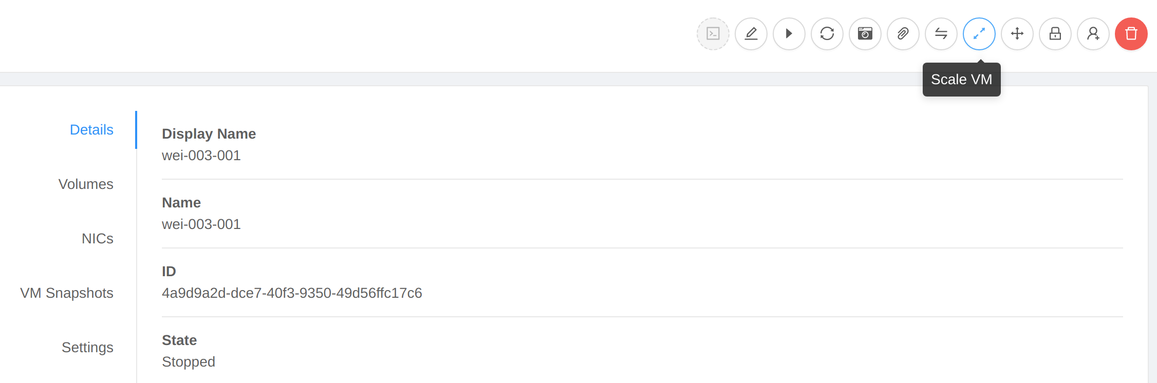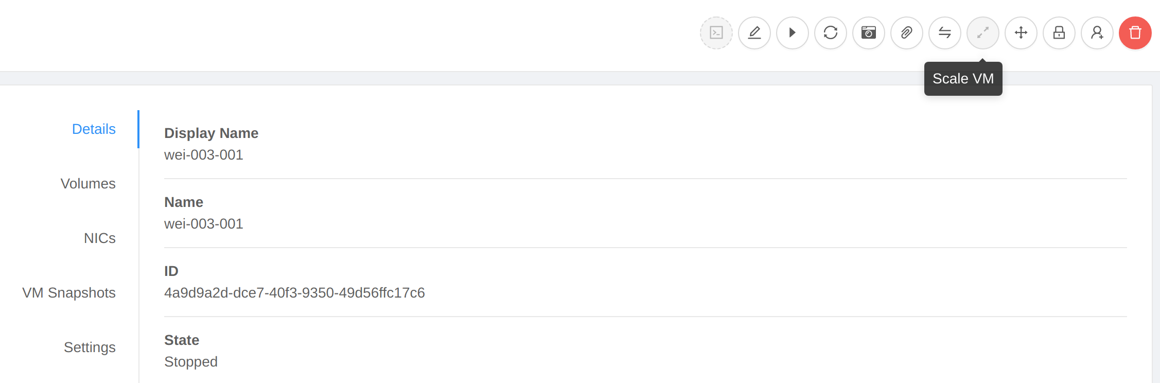 ### Description This PR fixes the issue on ui that scalevm button is disabled when vm is stopped. <!--- Describe your changes in DETAIL - And how has behaviour functionally changed. --> <!-- For new features, provide link to FS, dev ML discussion etc. --> <!-- In case of bug fix, the expected and actual behaviours, steps to reproduce. --> <!-- When "Fixes: #<id>" is specified, the issue/PR will automatically be closed when this PR gets merged --> <!-- For addressing multiple issues/PRs, use multiple "Fixes: #<id>" --> <!-- Fixes: # --> <!--- ********************************************************************************* --> <!--- NOTE: AUTOMATATION USES THE DESCRIPTIONS TO SET LABELS AND PRODUCE DOCUMENTATION. --> <!--- PLEASE PUT AN 'X' in only **ONE** box --> <!--- ********************************************************************************* --> ### Types of changes - [ ] Breaking change (fix or feature that would cause existing functionality to change) - [ ] New feature (non-breaking change which adds functionality) - [X] Bug fix (non-breaking change which fixes an issue) - [ ] Enhancement (improves an existing feature and functionality) - [ ] Cleanup (Code refactoring and cleanup, that may add test cases) ### Feature/Enhancement Scale or Bug Severity #### Feature/Enhancement Scale - [ ] Major - [ ] Minor #### Bug Severity - [ ] BLOCKER - [ ] Critical - [X] Major - [ ] Minor - [ ] Trivial ### Screenshots (if appropriate): prior this fix  with this fix  ### How Has This Been Tested? <!-- Please describe in detail how you tested your changes. --> <!-- Include details of your testing environment, and the tests you ran to --> <!-- see how your change affects other areas of the code, etc. --> <!-- Please read the [CONTRIBUTING](https://github.com/apache/cloudstack/blob/main/CONTRIBUTING.md) document --> -- This is an automated message from the Apache Git Service. To respond to the message, please log on to GitHub and use the URL above to go to the specific comment. To unsubscribe, e-mail: [email protected] For queries about this service, please contact Infrastructure at: [email protected]