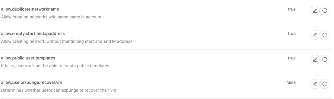 ## Description <!--- Describe your changes in detail --> Provide reset button to zone,cluster,domain,account, primary and secondary storage so that config values can be reset to the default value Depends on https://github.com/apache/cloudstack/pull/4215 ## Types of changes <!--- What types of changes does your code introduce? Put an `x` in all the boxes that apply: --> - [X] Enhancement (improves an existing feature and functionality) ## Screenshots (if appropriate): Reset button has been provided under zone,cluster, domain, account, primary storage and secondary storage level  ## How Has This Been Tested? <!-- Please describe in detail how you tested your changes. --> <!-- Include details of your testing environment, and the tests you ran to --> <!-- see how your change affects other areas of the code, etc. --> Tested throguh cmk also ``` (local) mgt01 > list configurations name=allow.user.expunge.recover.vm accountid=4048bfec-c28e-11ea-9a43-0617bc003377 { "configuration": [ { "category": "Advanced", "description": "Determines whether users can expunge or recover their vm", "isdynamic": true, "name": "allow.user.expunge.recover.vm", "scope": "account", "value": "false" } ], "count": 1 } (local) mgt01 > update configuration name=allow.user.expunge.recover.vm accountid=4048bfec-c28e-11ea-9a43-0617bc003377 value=true { "configuration": { "category": "Advanced", "description": "Determines whether users can expunge or recover their vm", "isdynamic": true, "name": "allow.user.expunge.recover.vm", "scope": "account", "value": "true" } } (local) mgt01 > reset configuration name=allow.user.expunge.recover.vm accountid=4048bfec-c28e-11ea-9a43-0617bc003377 { "configuration": { "category": "Advanced", "description": "Determines whether users can expunge or recover their vm", "isdynamic": true, "name": "allow.user.expunge.recover.vm", "scope": "account", "value": "false" } } (local) mgt01 > list configurations name=allow.user.expunge.recover.vm accountid=4048bfec-c28e-11ea-9a43-0617bc003377 { "configuration": [ { "category": "Advanced", "description": "Determines whether users can expunge or recover their vm", "isdynamic": true, "name": "allow.user.expunge.recover.vm", "scope": "account", "value": "false" } ], "count": 1 } ``` Run integration test case using ``` nosetests --with-marvin --marvin-config=<cfg file> test_reset_configuration_settings.py ``` -- This is an automated message from the Apache Git Service. To respond to the message, please log on to GitHub and use the URL above to go to the specific comment. To unsubscribe, e-mail: [email protected] For queries about this service, please contact Infrastructure at: [email protected]