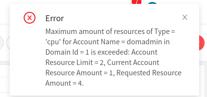 ### Description This PR addresses https://github.com/apache/cloudstack/issues/4155 - wherein resource limits for an account aren't checked when a VM's settings i.e., cpuNumber / memory are updated i.e., VM deployed with custom constrained compute offering. <!--- Describe your changes in DETAIL - And how has behaviour functionally changed. --> <!-- For new features, provide link to FS, dev ML discussion etc. --> <!-- In case of bug fix, the expected and actual behaviours, steps to reproduce. --> <!-- When "Fixes: #<id>" is specified, the issue/PR will automatically be closed when this PR gets merged --> <!-- For addressing multiple issues/PRs, use multiple "Fixes: #<id>" --> <!-- Fixes: # --> <!--- ********************************************************************************* --> <!--- NOTE: AUTOMATATION USES THE DESCRIPTIONS TO SET LABELS AND PRODUCE DOCUMENTATION. --> <!--- PLEASE PUT AN 'X' in only **ONE** box --> <!--- ********************************************************************************* --> ### Types of changes - [ ] Breaking change (fix or feature that would cause existing functionality to change) - [ ] New feature (non-breaking change which adds functionality) - [X] Bug fix (non-breaking change which fixes an issue) - [ ] Enhancement (improves an existing feature and functionality) - [ ] Cleanup (Code refactoring and cleanup, that may add test cases) ### Feature/Enhancement Scale or Bug Severity #### Bug Severity - [ ] BLOCKER - [ ] Critical - [ ] Major - [X] Minor - [ ] Trivial ### Screenshots (if appropriate): ### How Has This Been Tested? Set resource limit to a low value for domain admin:  Deployed a VM using custom constrained compute offering with cpuNumber = 1 and memory = 100MB  Updated VM settings with cpuNumber = 4 (max = 2) - Failed as expected:  Updated VM settings with memory = 1200 (max = 1000) - Failed as expected:  <!-- Please describe in detail how you tested your changes. --> <!-- Include details of your testing environment, and the tests you ran to --> <!-- see how your change affects other areas of the code, etc. --> <!-- Please read the [CONTRIBUTING](https://github.com/apache/cloudstack/blob/main/CONTRIBUTING.md) document --> -- This is an automated message from the Apache Git Service. To respond to the message, please log on to GitHub and use the URL above to go to the specific comment. To unsubscribe, e-mail: [email protected] For queries about this service, please contact Infrastructure at: [email protected]