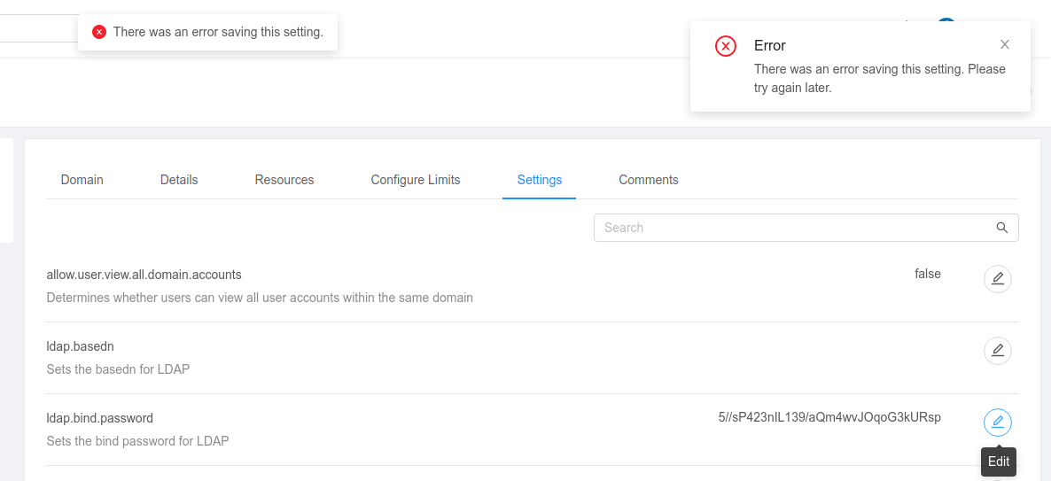 update configuration domainid=<domain_uuid> name=ldap.bind.password value=