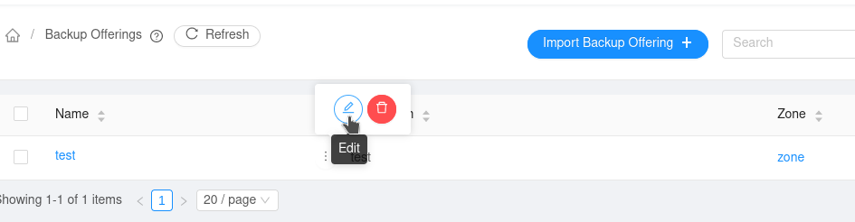 ### Description This PR allows users to edit a name and description of a Backup Offering ### Types of changes - [ ] Breaking change (fix or feature that would cause existing functionality to change) - [ ] New feature (non-breaking change which adds functionality) - [ ] Bug fix (non-breaking change which fixes an issue) - [x] Enhancement (improves an existing feature and functionality) - [ ] Cleanup (Code refactoring and cleanup, that may add test cases) ### Feature/Enhancement Scale or Bug Severity #### Feature/Enhancement Scale - [ ] Major - [x] Minor ### Screenshots (if appropriate):      ### How Has This Been Tested? I tested in a local lab. 1. I imported a Backup Offering; 2. I edited the name of this offering; 3. I edited the description of this offering. 4. I checked, in UI and DB if changes are applied. -- This is an automated message from the Apache Git Service. To respond to the message, please log on to GitHub and use the URL above to go to the specific comment. To unsubscribe, e-mail: [email protected] For queries about this service, please contact Infrastructure at: [email protected]