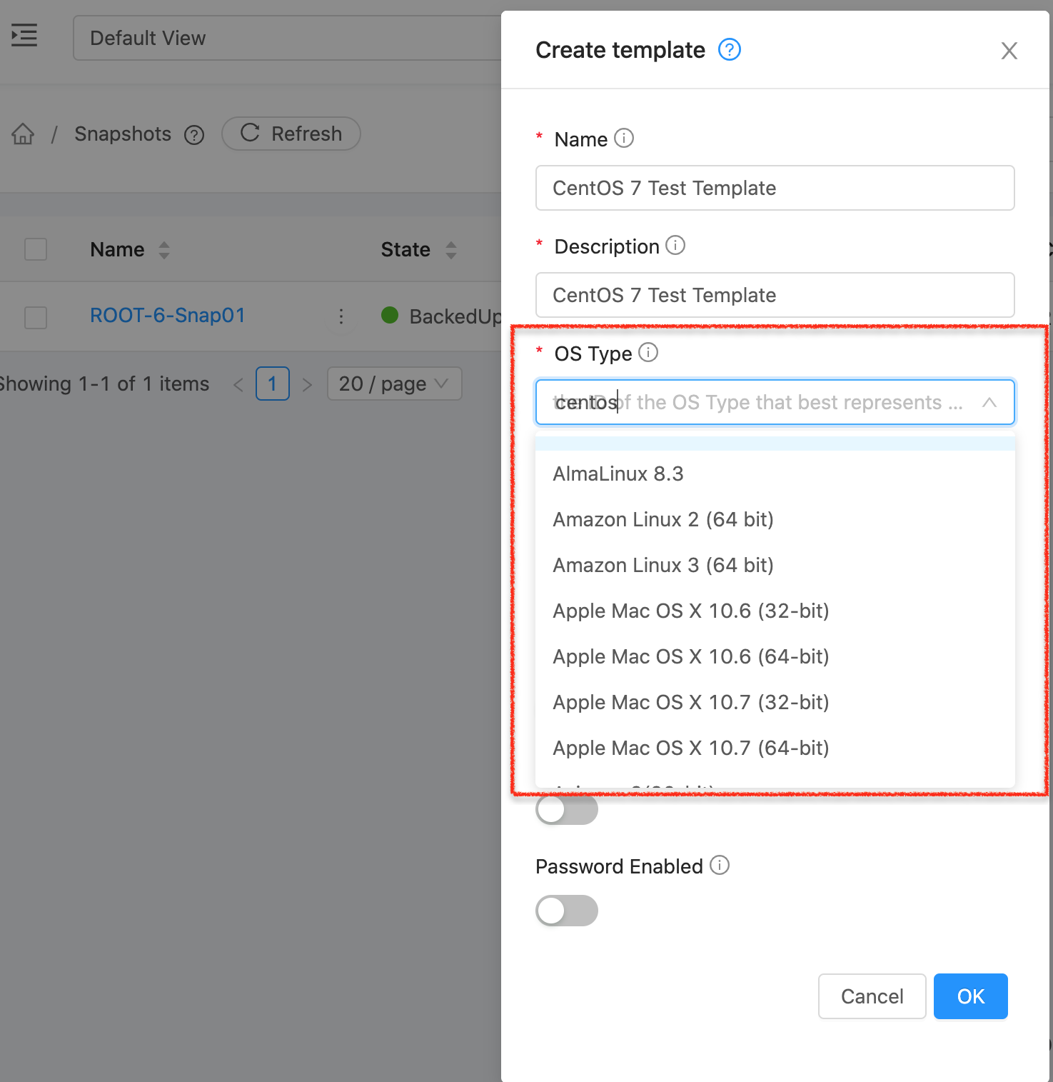 - Go to Snapshots section in the UI, Select the snapshot and Choose "Create