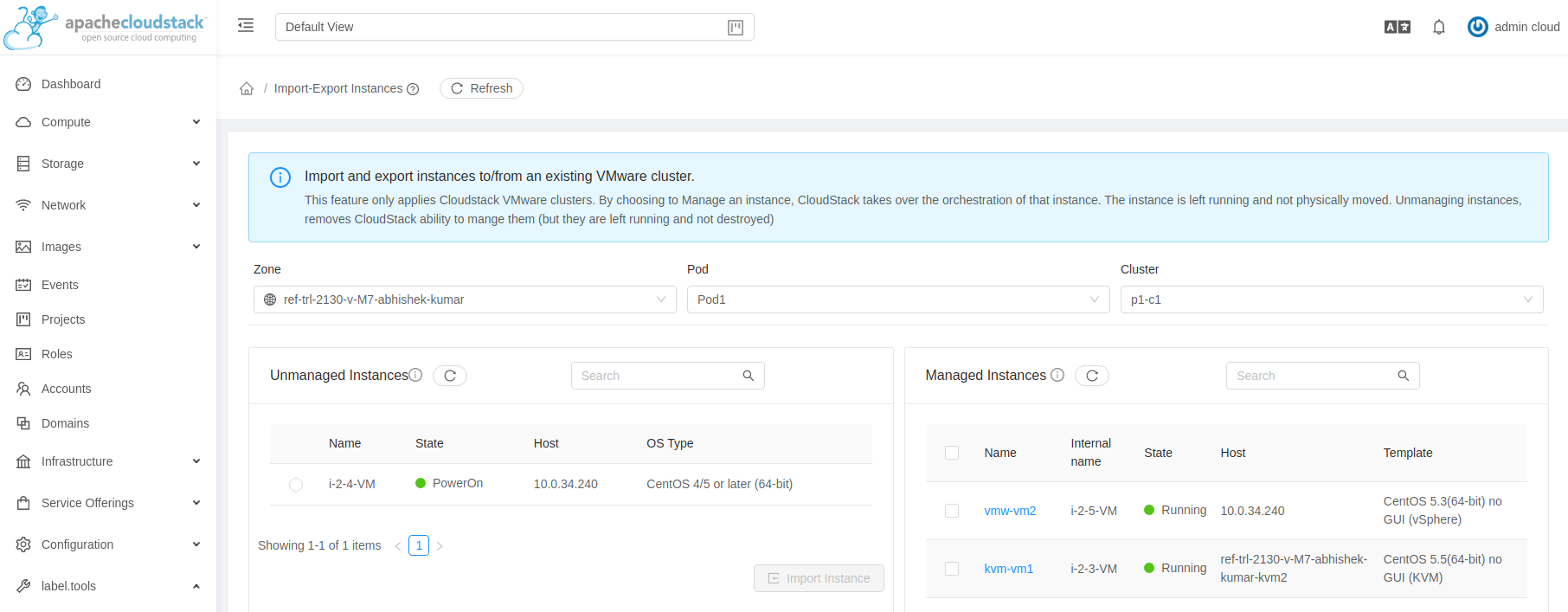### Description Add clusterid parameter in listVirtualMachines API for admin Import-Export Instances UI relies on cluster filtering for managed instances. Without clusterid param support in `listVirtualMachines` API for admins it lists all VMs in the zone. <!--- Describe your changes in DETAIL - And how has behaviour functionally changed. --> <!-- For new features, provide link to FS, dev ML discussion etc. --> <!-- In case of bug fix, the expected and actual behaviours, steps to reproduce. --> <!-- When "Fixes: #<id>" is specified, the issue/PR will automatically be closed when this PR gets merged --> <!-- For addressing multiple issues/PRs, use multiple "Fixes: #<id>" --> <!-- Fixes: # --> <!--- ********************************************************************************* --> <!--- NOTE: AUTOMATATION USES THE DESCRIPTIONS TO SET LABELS AND PRODUCE DOCUMENTATION. --> <!--- PLEASE PUT AN 'X' in only **ONE** box --> <!--- ********************************************************************************* --> ### Types of changes - [ ] Breaking change (fix or feature that would cause existing functionality to change) - [ ] New feature (non-breaking change which adds functionality) - [ ] Bug fix (non-breaking change which fixes an issue) - [ ] Enhancement (improves an existing feature and functionality) - [ ] Cleanup (Code refactoring and cleanup, that may add test cases) ### Feature/Enhancement Scale or Bug Severity #### Feature/Enhancement Scale - [ ] Major - [ ] Minor #### Bug Severity - [ ] BLOCKER - [ ] Critical - [ ] Major - [ ] Minor - [ ] Trivial ### Screenshots (if appropriate): ### How Has This Been Tested? <!-- Please describe in detail how you tested your changes. --> <!-- Include details of your testing environment, and the tests you ran to --> <!-- see how your change affects other areas of the code, etc. --> **Before:**  **After:**  <!-- Please read the [CONTRIBUTING](https://github.com/apache/cloudstack/blob/main/CONTRIBUTING.md) document --> -- This is an automated message from the Apache Git Service. To respond to the message, please log on to GitHub and use the URL above to go to the specific comment. To unsubscribe, e-mail: [email protected] For queries about this service, please contact Infrastructure at: [email protected]