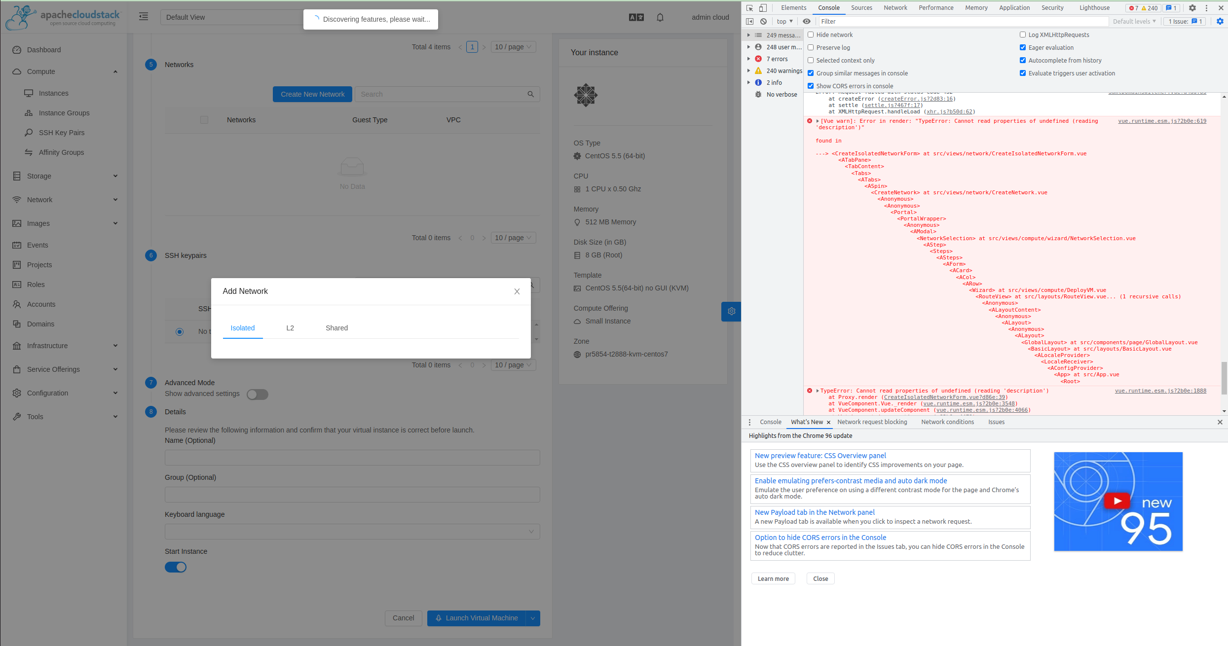 @DaanHoogland @weizhouapache @rohityadavcloud @sureshanaparti cc @borisstoyanov As I've mentioned earlier my approach can break UI in some scenarios. Below is an example: - Login with redirection `?redirect=%2Faction%2FdeployVirtualMachine` - Before 2nd listApis call is completed (Discovering features notification still showing), click on create network. This will result in empty form  I've already added a change to hide view action buttons till feature discovery is complete but there could be still many place in UI which may show similar error when login is done with redirection (or the listApis call with complete response is still running). I've also tried role based caching of API lists in the backend but that hardly makes any difference in UI login.  Therefore, at this point I'm of the opinion of closing this PR (or creating a new one with only APIChecker improvements) -- This is an automated message from the Apache Git Service. To respond to the message, please log on to GitHub and use the URL above to go to the specific comment. To unsubscribe, e-mail: [email protected] For queries about this service, please contact Infrastructure at: [email protected]