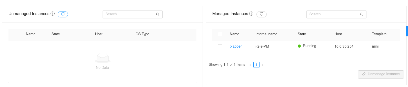 @shwstppr I can see the managed but not the unmanaged instances:  I had unmanaged i-2-7-VM and i-2-11-VM and they do not show up in the UI  -- This is an automated message from the Apache Git Service. To respond to the message, please log on to GitHub and use the URL above to go to the specific comment. To unsubscribe, e-mail: [email protected] For queries about this service, please contact Infrastructure at: [email protected]