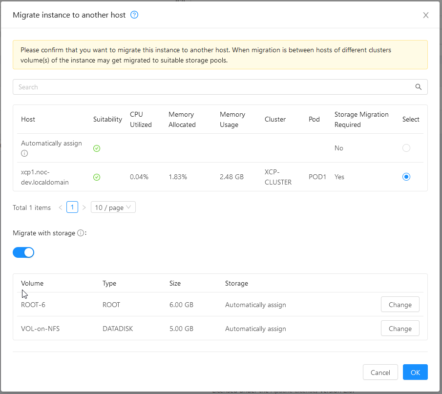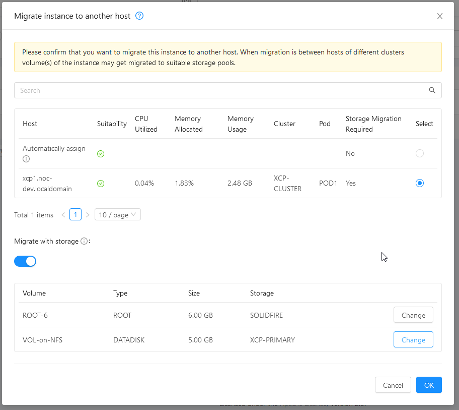 Hi @nvazquez, just tried **successfully** inter-cluster VM migration through UI using **cloudstack-common-4.17.0.0-SNAPSHOT.20220217.el7.x86_64.rpm, cloudstack-management-4.17.0.0-SNAPSHOT.20220217.el7.x86_64.rpm VM with `ROOT` disk on Solidfire and `DATA` disk on NFS migrated from XEN to XCP cluster choosing storage pool destination for each disk through the UI... just excellent! Snapshots, and management log are following:       Management log: [nv_intercluster-vm_migr_UI.txt](https://github.com/apache/cloudstack/files/8096243/nv_intercluster-vm_migr_UI.txt) -- This is an automated message from the Apache Git Service. To respond to the message, please log on to GitHub and use the URL above to go to the specific comment. To unsubscribe, e-mail: [email protected] For queries about this service, please contact Infrastructure at: [email protected]