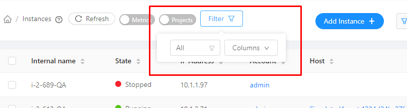 @rohityadavcloud cc @davidjumani What do you think if I will combine `filter by` with `columns` as shown below?  -- This is an automated message from the Apache Git Service. To respond to the message, please log on to GitHub and use the URL above to go to the specific comment. To unsubscribe, e-mail: [email protected] For queries about this service, please contact Infrastructure at: [email protected]