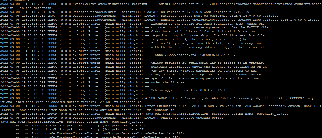 Cloudstack to start, but it didn;t