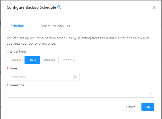 ### Description This PR for fix can't select interval type in config backup schedule <!--- Describe your changes in DETAIL - And how has behaviour functionally changed. --> <!-- For new features, provide link to FS, dev ML discussion etc. --> <!-- In case of bug fix, the expected and actual behaviours, steps to reproduce. --> <!-- When "Fixes: #<id>" is specified, the issue/PR will automatically be closed when this PR gets merged --> <!-- For addressing multiple issues/PRs, use multiple "Fixes: #<id>" --> <!-- Fixes: # --> <!--- ********************************************************************************* --> <!--- NOTE: AUTOMATATION USES THE DESCRIPTIONS TO SET LABELS AND PRODUCE DOCUMENTATION. --> <!--- PLEASE PUT AN 'X' in only **ONE** box --> <!--- ********************************************************************************* --> ### Types of changes - [ ] Breaking change (fix or feature that would cause existing functionality to change) - [ ] New feature (non-breaking change which adds functionality) - [x] Bug fix (non-breaking change which fixes an issue) - [ ] Enhancement (improves an existing feature and functionality) - [ ] Cleanup (Code refactoring and cleanup, that may add test cases) ### Feature/Enhancement Scale or Bug Severity #### Feature/Enhancement Scale - [ ] Major - [x] Minor #### Bug Severity - [ ] BLOCKER - [ ] Critical - [ ] Major - [ ] Minor - [ ] Trivial ### Screenshots (if appropriate):   ### How Has This Been Tested? <!-- Please describe in detail how you tested your changes. --> <!-- Include details of your testing environment, and the tests you ran to --> <!-- see how your change affects other areas of the code, etc. --> <!-- Please read the [CONTRIBUTING](https://github.com/apache/cloudstack/blob/main/CONTRIBUTING.md) document --> -- This is an automated message from the Apache Git Service. To respond to the message, please log on to GitHub and use the URL above to go to the specific comment. To unsubscribe, e-mail: [email protected] For queries about this service, please contact Infrastructure at: [email protected]