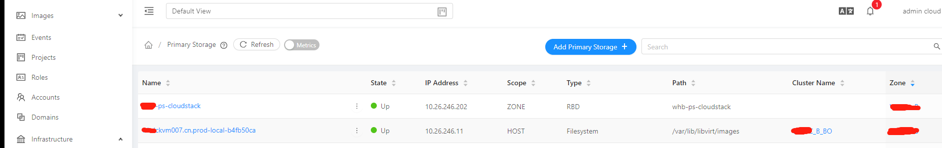 The cloudstack env using the Ceph RBD and local storage as cloudstack