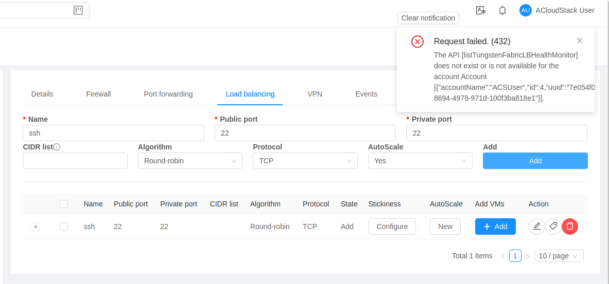### Description This fixes an error message when create load balancer as a normal user  ### Types of changes - [ ] Breaking change (fix or feature that would cause existing functionality to change) - [ ] New feature (non-breaking change which adds functionality) - [x] Bug fix (non-breaking change which fixes an issue) - [ ] Enhancement (improves an existing feature and functionality) - [ ] Cleanup (Code refactoring and cleanup, that may add test cases) -- This is an automated message from the Apache Git Service. To respond to the message, please log on to GitHub and use the URL above to go to the specific comment. To unsubscribe, e-mail: [email protected] For queries about this service, please contact Infrastructure at: [email protected]