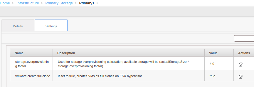 shwstppr commented on issue #3447: NFS Cluster-wide storage capacity calculation and overprovisioning URL: https://github.com/apache/cloudstack/issues/3447#issuecomment-508456749 Unable to reproduce on master. _Per-storage overprovisioning setting is considered on master_.   ``` 2019-07-04 17:26:53,451 DEBUG [c.c.s.StorageManagerImpl] (Work-Job-Executor-17:ctx-87980313 job-181/job-182 ctx-e8c132ff) (logid:4e2e7043) Destination pool id: 2 2019-07-04 17:26:53,454 DEBUG [c.c.s.StorageManagerImpl] (Work-Job-Executor-17:ctx-87980313 job-181/job-182 ctx-e8c132ff) (logid:4e2e7043) Pool ID for the volume with ID 35 is null 2019-07-04 17:26:53,455 DEBUG [c.c.s.StorageManagerImpl] (Work-Job-Executor-17:ctx-87980313 job-181/job-182 ctx-e8c132ff) (logid:4e2e7043) Found storage pool Primary1 of type NetworkFilesystem with over-provisioning factor 4 2019-07-04 17:26:53,455 DEBUG [c.c.s.StorageManagerImpl] (Work-Job-Executor-17:ctx-87980313 job-181/job-182 ctx-e8c132ff) (logid:4e2e7043) Total over-provisioned capacity calculated is 4 * 100256448512 2019-07-04 17:26:53,455 DEBUG [c.c.s.StorageManagerImpl] (Work-Job-Executor-17:ctx-87980313 job-181/job-182 ctx-e8c132ff) (logid:4e2e7043) Total capacity of the pool Primary1 with ID 2 is 401025794048 2019-07-04 17:26:53,455 DEBUG [c.c.s.StorageManagerImpl] (Work-Job-Executor-17:ctx-87980313 job-181/job-182 ctx-e8c132ff) (logid:4e2e7043) Checking pool: 2 for storage allocation , maxSize : 401025794048, totalAllocatedSize : 354639560704, askingSize : 107374182400, allocated disable threshold: 0.95 2019-07-04 17:26:53,455 DEBUG [c.c.s.StorageManagerImpl] (Work-Job-Executor-17:ctx-87980313 job-181/job-182 ctx-e8c132ff) (logid:4e2e7043) Insufficient un-allocated capacity on: 2 for storage allocation since its allocated percentage: 1.1520798660863698 has crossed the allocated pool.storage.allocated.capacity.disablethreshold: 0.95, skipping this pool ```