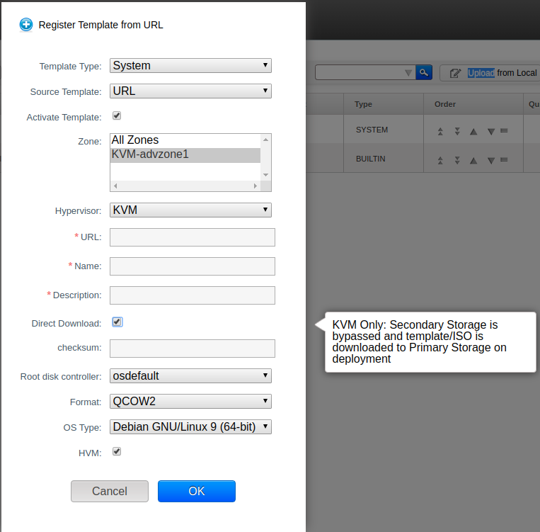 shwstppr opened a new pull request #3731: [WIP DO NOT MERGE] Enable Direct Download for System VMs URL: https://github.com/apache/cloudstack/pull/3731 ## Description For registering templates, the direct download feature does not include support for system VMs. Administrators can register new system VM templates with the direct download flag, however this flag is not honoured, and it is not possible to bypass secondary storage when creating/recreating system VMs. Changes in this PR modifies this behaviour and enables direct download support for system VM templates.    ## Types of changes <!--- What types of changes does your code introduce? Put an `x` in all the boxes that apply: --> - [ ] Breaking change (fix or feature that would cause existing functionality to change) - [ ] New feature (non-breaking change which adds functionality) - [ ] Bug fix (non-breaking change which fixes an issue) - [x] Enhancement (improves an existing feature and functionality) - [ ] Cleanup (Code refactoring and cleanup, that may add test cases) ## Screenshots (if appropriate): ## How Has This Been Tested? <!-- Please describe in detail how you tested your changes. --> <!-- Include details of your testing environment, and the tests you ran to --> <!-- see how your change affects other areas of the code, etc. --> Using API (with CMK) and UI ``` > register template name=DD-Template displaytext=DD-Template url=http://172.20.0.1/files/systemvmtemplate-4.11.3-kvm.qcow2.bz2 zoneids=87b2b96c-101c-4d3a-8966-3655956454ff format=QCOW2 isextractable=false passwordEnabled=false isdynamicallyscalable=false ostypeid=dbfbbd3a-2568-11ea-8be3-645d8651f45a hypervisor=KVM system=true activate=true requireshvm=true details[0].rootDiskController=osdefault directdownload=true { "count": 1, "template": [ { "account": "admin", "bits": 0, "created": "2019-12-23T17:04:05+0530", "crossZones": true, "details": { "rootDiskController": "osdefault" }, "directdownload": true, "displaytext": "DD-Template", "domain": "ROOT", "domainid": "dc0604c5-2568-11ea-8be3-645d8651f45a", "format": "QCOW2", "hypervisor": "KVM", "id": "255ca321-be38-4312-9292-3d47757a2027", "isdynamicallyscalable": false, "isextractable": false, "isfeatured": false, "ispublic": false, "isready": true, "name": "DD-Template", "ostypeid": "dbfbbd3a-2568-11ea-8be3-645d8651f45a", "ostypename": "Debian GNU/Linux 5.0 (64-bit)", "passwordenabled": false, "requireshvm": false, "size": 302213425, "sshkeyenabled": false, "state": "Inactive", "status": "Bypassed Secondary Storage", "tags": [], "templatetype": "SYSTEM", "zoneid": "87b2b96c-101c-4d3a-8966-3655956454ff", "zonename": "KVM-advzone1" } ] } ``` Database, ``` mysql> SELECT * FROM cloud.vm_template WHERE uuid='255ca321-be38-4312-9292-3d47757a2027'\G *************************** 1. row *************************** id: 204 unique_name: routing-204 name: DD-Template uuid: 255ca321-be38-4312-9292-3d47757a2027 public: 0 featured: 0 type: SYSTEM hvm: 0 bits: 64 url: http://172.20.0.1/files/systemvmtemplate-4.11.3-kvm.qcow2.bz2 format: QCOW2 created: 2019-12-23 11:34:05 removed: NULL account_id: 2 checksum: NULL display_text: DD-Template enable_password: 0 enable_sshkey: 0 guest_os_id: 15 bootable: 1 prepopulate: 0 cross_zones: 1 extractable: 0 hypervisor_type: KVM source_template_id: NULL template_tag: NULL sort_key: 0 size: 302213425 state: Inactive update_count: 0 updated: NULL dynamically_scalable: 0 parent_template_id: NULL direct_download: 1 activate_after_upload: 1 ``` ``` mysql> SELECT * FROM cloud.template_store_ref WHERE template_id=(SELECT id FROM cloud.vm_template WHERE uuid='255ca321-be38-4312-9292-3d47757a2027')\G; *************************** 1. row *************************** id: 10 store_id: NULL template_id: 204 created: 2019-12-23 11:34:05 last_updated: NULL job_id: NULL download_pct: 0 size: 302213425 store_role: Image physical_size: 0 download_state: BYPASSED error_str: NULL local_path: NULL install_path: NULL url: NULL state: Ready destroyed: 0 is_copy: 0 update_count: 0 ref_cnt: 0 updated: NULL download_url_created: NULL download_url: NULL ``` ``` mysql> SELECT * FROM cloud.template_spool_ref WHERE template_id=(SELECT id FROM cloud.vm_template WHERE uuid='255ca321-be38-4312-9292-3d47757a2027')\G; *************************** 1. row *************************** id: 4 pool_id: 1 template_id: 204 created: 2019-12-23 11:41:04 last_updated: NULL job_id: NULL download_pct: 100 download_state: DOWNLOADED error_str: NULL local_path: 6ae40263-9cb1-483c-a302-82d0805c8517 install_path: 6ae40263-9cb1-483c-a302-82d0805c8517 template_size: 297232 marked_for_gc: 0 state: Ready update_count: 0 updated: NULL ``` <!-- Please read the [CONTRIBUTING](https://github.com/apache/cloudstack/blob/master/CONTRIBUTING.md) document -->