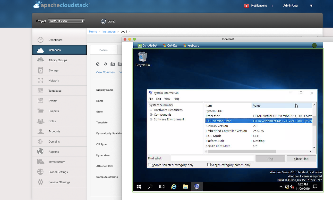 pavanaravapalli opened a new pull request #3638: UEFI Support on CloudStack URL: https://github.com/apache/cloudstack/pull/3638 ## Description To Enable UEFI Support for Guest VM's deployed on Hypervisors[ KVM, VMware] in Cloud Stack. <!-- For new features, provide link to FS, dev ML discussion etc. --> Refer below doc for more information. https://cwiki.apache.org/confluence/display/CLOUDSTACK/Enable+UEFI+booting+for+Instance <!-- In case of bug fix, the expected and actual behaviours, steps to reproduce. --> <!-- When "Fixes: #<id>" is specified, the issue/PR will automatically be closed when this PR gets merged --> <!-- For addressing multiple issues/PRs, use multiple "Fixes: #<id>" --> <!-- Fixes: # --> ## Types of changes <!--- What types of changes does your code introduce? Put an `x` in all the boxes that apply: --> - [ ] Breaking change (fix or feature that would cause existing functionality to change) - [x] New feature (non-breaking change which adds functionality) - [ ] Bug fix (non-breaking change which fixes an issue) - [ ] Enhancement (improves an existing feature and functionality) - [ ] Cleanup (Code refactoring and cleanup, that may add test cases) ## Screenshots (if appropriate): **KVM Host configuration** - Install OVMF package by following instruction from the link [here](https://access.redhat.com/documentation/en-us/red_hat_enterprise_linux/8/html-single/configuring_and_managing_virtualization/index) - Create uefi.properties file at location /etc/cloudstack/agent/uefi.properties - insert loader details with respective to the ovmf package would like to integrate. for example  ## How Has This Been Tested? <!-- Please describe in detail how you tested your changes. --> **KVM** 1. Prepared KVM [ RHEL 8 ] host UEFI enabled by installing OVMF package and configuring libvirt with nvram params 2. Installed cloud stack agent rpm on KVM host. 3. Created & updated uefi.properties configuration file with UEFI params as describe above in "KVM Host Configuration". 4. Added KVM Host to a Cluster in Cloud Stack. 5. Prepared & registered 'Windows Server 2016' & 'Cent OS 7.x' [KVM] templates on to CloudStack. i.e UEFI enabled. 6. Deployed a VM [ boot options as UEFI -> Secure , UEFI -> Legacy ]with Windows Server 2016 template and verified the UEFI boot information. 7. Deployed a VM [ boot options as UEFI -> Secure , UEFI -> Legacy ]with Cent OS 7.x template and verified the UEFI boot information. Note: brctl-utils package is deprecated in RHEL 8. We have force installed epel7 rpm in RHEL 8 and configured KVM agent. VM Booting with UEFI firmware  Windows Server 2016 VM Secure boot enabled  Windows Server 2016 VM Secure boot disabled  Cent OS 7 Linux : Secure boot enabled  **VMware** 1. Added VMware ESXi[6.5] Host in Cloud Stack Vmware Cluster 2. Prepared & registered 'Windows Server 2016' [Vmware] templates on to CloudStack. i.e UEFI enabled. 3. Deployed a VM [ boot options as UEFI -> Secure , UEFI -> Legacy ]with Windows Server 2016 template and verified the UEFI boot information. Windows Server 2106 VM Secure boot disabled  Windows Server 2106 VM Secure boot enabled  <!-- Include details of your testing environment, and the tests you ran to --> <!-- see how your change affects other areas of the code, etc. --> <!-- Please read the [CONTRIBUTING](https://github.com/apache/cloudstack/blob/master/CONTRIBUTING.md) document --> UEFI Enabled Host  Guest VM Uefi Boot Details