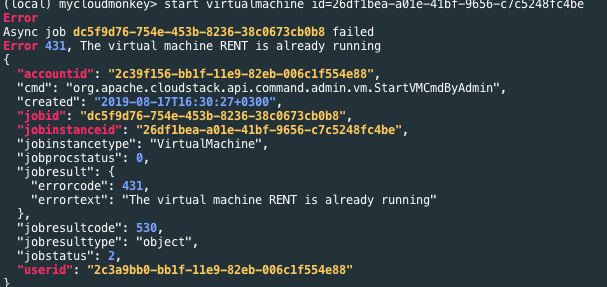 kioie opened a new pull request #3563: Limit API from trying to start a VM that is already running URL: https://github.com/apache/cloudstack/pull/3563 ## Description <!--- Describe your changes in detail --> Enhancement for issue #2736 <!-- For new features, provide link to FS, dev ML discussion etc. --> <!-- In case of bug fix, the expected and actual behaviours, steps to reproduce. --> <!-- When "Fixes: #<id>" is specified, the issue/PR will automatically be closed when this PR gets merged --> <!-- For addressing multiple issues/PRs, use multiple "Fixes: #<id>" --> <!-- Fixes: # --> ## Types of changes <!--- What types of changes does your code introduce? Put an `x` in all the boxes that apply: --> - [ ] Breaking change (fix or feature that would cause existing functionality to change) - [ ] New feature (non-breaking change which adds functionality) - [x] Bug fix (non-breaking change which fixes an issue) - [ ] Enhancement (improves an existing feature and functionality) - [ ] Cleanup (Code refactoring and cleanup, that may add test cases) ## Screenshots (if appropriate):  ## How Has This Been Tested? <!-- Please describe in detail how you tested your changes. --> <!-- Include details of your testing environment, and the tests you ran to --> <!-- see how your change affects other areas of the code, etc. --> 1. Start a VM 2. With cloudmonkey, start the same VM 3. Observe the result Response should fail the job and say VM is already in running state. <!-- Please read the [CONTRIBUTING](https://github.com/apache/cloudstack/blob/master/CONTRIBUTING.md) document -->