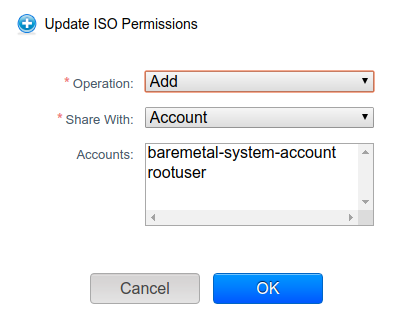 nvazquez opened a new pull request #4017: [UI] Update ISO permissions URL: https://github.com/apache/cloudstack/pull/4017 ## Description Add UI support for the existing `updateIsoPermissions` API. ## Types of changes - [ ] Breaking change (fix or feature that would cause existing functionality to change) - [ ] New feature (non-breaking change which adds functionality) - [ ] Bug fix (non-breaking change which fixes an issue) - [x] Enhancement (improves an existing feature and functionality) - [ ] Cleanup (Code refactoring and cleanup, that may add test cases) ## Screenshots (if appropriate):  ## How Has This Been Tested? Register ISO -> Update ISO permissions