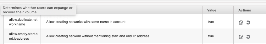 ## Description <!--- Describe your changes in detail --> Provide reset button to zone,cluster,domain,account, primary and secondary storage so that config values can be reset to the default value ## Types of changes <!--- What types of changes does your code introduce? Put an `x` in all the boxes that apply: --> - [X] Enhancement (improves an existing feature and functionality) ## Screenshots (if appropriate): Reset button has been provided under zone,cluster, domain, account, primary storage and secondary storage level  ## How Has This Been Tested? <!-- Please describe in detail how you tested your changes. --> <!-- Include details of your testing environment, and the tests you ran to --> <!-- see how your change affects other areas of the code, etc. --> Tested throguh cmk also ``` (local) mgt01 > list configurations name=allow.user.expunge.recover.vm accountid=4048bfec-c28e-11ea-9a43-0617bc003377 { "configuration": [ { "category": "Advanced", "description": "Determines whether users can expunge or recover their vm", "isdynamic": true, "name": "allow.user.expunge.recover.vm", "scope": "account", "value": "false" } ], "count": 1 } (local) mgt01 > update configuration name=allow.user.expunge.recover.vm accountid=4048bfec-c28e-11ea-9a43-0617bc003377 value=true { "configuration": { "category": "Advanced", "description": "Determines whether users can expunge or recover their vm", "isdynamic": true, "name": "allow.user.expunge.recover.vm", "scope": "account", "value": "true" } } (local) mgt01 > reset configuration name=allow.user.expunge.recover.vm accountid=4048bfec-c28e-11ea-9a43-0617bc003377 { "configuration": { "category": "Advanced", "description": "Determines whether users can expunge or recover their vm", "isdynamic": true, "name": "allow.user.expunge.recover.vm", "scope": "account", "value": "false" } } (local) mgt01 > list configurations name=allow.user.expunge.recover.vm accountid=4048bfec-c28e-11ea-9a43-0617bc003377 { "configuration": [ { "category": "Advanced", "description": "Determines whether users can expunge or recover their vm", "isdynamic": true, "name": "allow.user.expunge.recover.vm", "scope": "account", "value": "false" } ], "count": 1 } ``` Run integration test case using ``` nosetests --with-marvin --marvin-config=<cfg file> test_reset_configuration_settings.py ``` ---------------------------------------------------------------- This is an automated message from the Apache Git Service. To respond to the message, please log on to GitHub and use the URL above to go to the specific comment. For queries about this service, please contact Infrastructure at: [email protected]