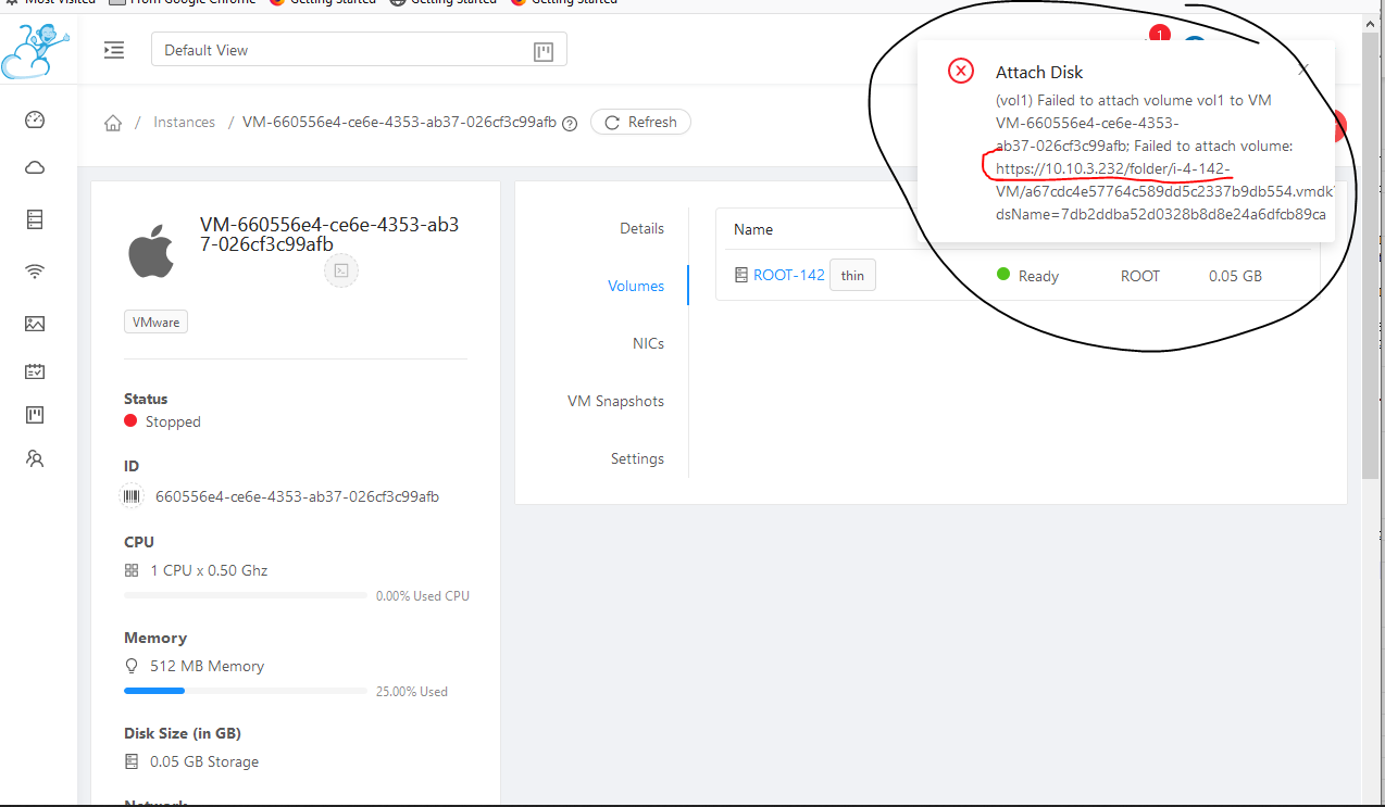 VMware, master WHen a volume is deleted, then recovered - there is an issue attaching a volume (@weizhouapache didn't you work on a PR for allowing delete/expunge vs. just deletting a volume? perhaps you can advise here?) - sensitive info is sent by the backend and displayed in UI:  The simple fix might be to remove the volume location from vSphere - just keep the first sentence of the error responce, but ensure that the full info is logged in debug/elsewhere in the mgmt log. ---------------------------------------------------------------- This is an automated message from the Apache Git Service. To respond to the message, please log on to GitHub and use the URL above to go to the specific comment. For queries about this service, please contact Infrastructure at: [email protected]