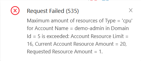 Sorry for the long waiting time. I just stumbled over this problem again. So this is what I did: Logging in as this account (domain-admin) (limit 16 cpus):  Into this Domain (limit 16 cpus):  Editing this VM (8 cpus):  Which has this Compute Offering (custom constrained):  Inside this menu:  To 20 CPUs:  And thats perfectly fine:  And the VM starts without a problem:  Even though the Domain and Account Limits look like that:  Of course I cant create another VM because my Limit is reached:  But if I had 20 VMs I could set all of them to 20CPUs or more without a problem and start all of them. The same thing happens on the old UI. ---------------------------------------------------------------- This is an automated message from the Apache Git Service. To respond to the message, please log on to GitHub and use the URL above to go to the specific comment. For queries about this service, please contact Infrastructure at: [email protected]