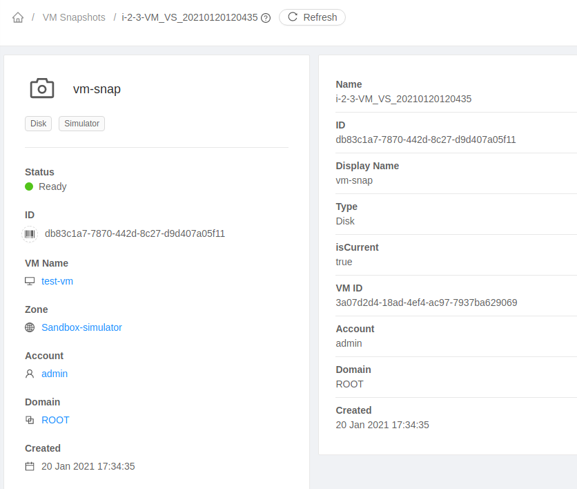 ### Description Adds new params in listVmSnapshot API - `zonename`, `virtualmachinename` Fixes #4603 <!--- ********************************************************************************* --> <!--- NOTE: AUTOMATATION USES THE DESCRIPTIONS TO SET LABELS AND PRODUCE DOCUMENTATION. --> <!--- PLEASE PUT AN 'X' in only **ONE** box --> <!--- ********************************************************************************* --> ### Types of changes - [ ] Breaking change (fix or feature that would cause existing functionality to change) - [ ] New feature (non-breaking change which adds functionality) - [x] Bug fix (non-breaking change which fixes an issue) - [x] Enhancement (improves an existing feature and functionality) - [ ] Cleanup (Code refactoring and cleanup, that may add test cases) ### Feature/Enhancement Scale or Bug Severity #### Feature/Enhancement Scale - [ ] Major - [x] Minor #### Bug Severity - [ ] BLOCKER - [ ] Critical - [ ] Major - [ ] Minor - [x] Trivial ### Screenshots (if appropriate): ### How Has This Been Tested? <!-- Please describe in detail how you tested your changes. --> <!-- Include details of your testing environment, and the tests you ran to --> <!-- see how your change affects other areas of the code, etc. --> UI After change zone name and VM name are shown  CMK: Before - ``` > list vmsnapshot vmsnapshotid=db83c1a7-7870-442d-8c27-d9d407a05f11 { "count": 1, "vmSnapshot": [ { "account": "admin", "created": "2021-01-20T17:34:35+0530", "current": true, "displayname": "vm-snap", "domain": "ROOT", "domainid": "52611b65-5b16-11eb-b67a-645d8651f45a", "hypervisor": "Simulator", "id": "db83c1a7-7870-442d-8c27-d9d407a05f11", "name": "i-2-3-VM_VS_20210120120435", "state": "Ready", "tags": [], "type": "Disk", "virtualmachineid": "3a07d2d4-18ad-4ef4-ac97-7937ba629069", "zoneid": "5918c672-47aa-4425-9ff9-d71d79d2b304", } ] } ``` After- ``` > list vmsnapshot vmsnapshotid=db83c1a7-7870-442d-8c27-d9d407a05f11 { "count": 1, "vmSnapshot": [ { "account": "admin", "created": "2021-01-20T17:34:35+0530", "current": true, "displayname": "vm-snap", "domain": "ROOT", "domainid": "52611b65-5b16-11eb-b67a-645d8651f45a", "hypervisor": "Simulator", "id": "db83c1a7-7870-442d-8c27-d9d407a05f11", "name": "i-2-3-VM_VS_20210120120435", "state": "Ready", "tags": [], "type": "Disk", "virtualmachineid": "3a07d2d4-18ad-4ef4-ac97-7937ba629069", "virtualmachinename": "test-vm", "zoneid": "5918c672-47aa-4425-9ff9-d71d79d2b304", "zonename": "Sandbox-simulator" } ] } ``` <!-- Please read the [CONTRIBUTING](https://github.com/apache/cloudstack/blob/master/CONTRIBUTING.md) document --> ---------------------------------------------------------------- This is an automated message from the Apache Git Service. To respond to the message, please log on to GitHub and use the URL above to go to the specific comment. For queries about this service, please contact Infrastructure at: [email protected]