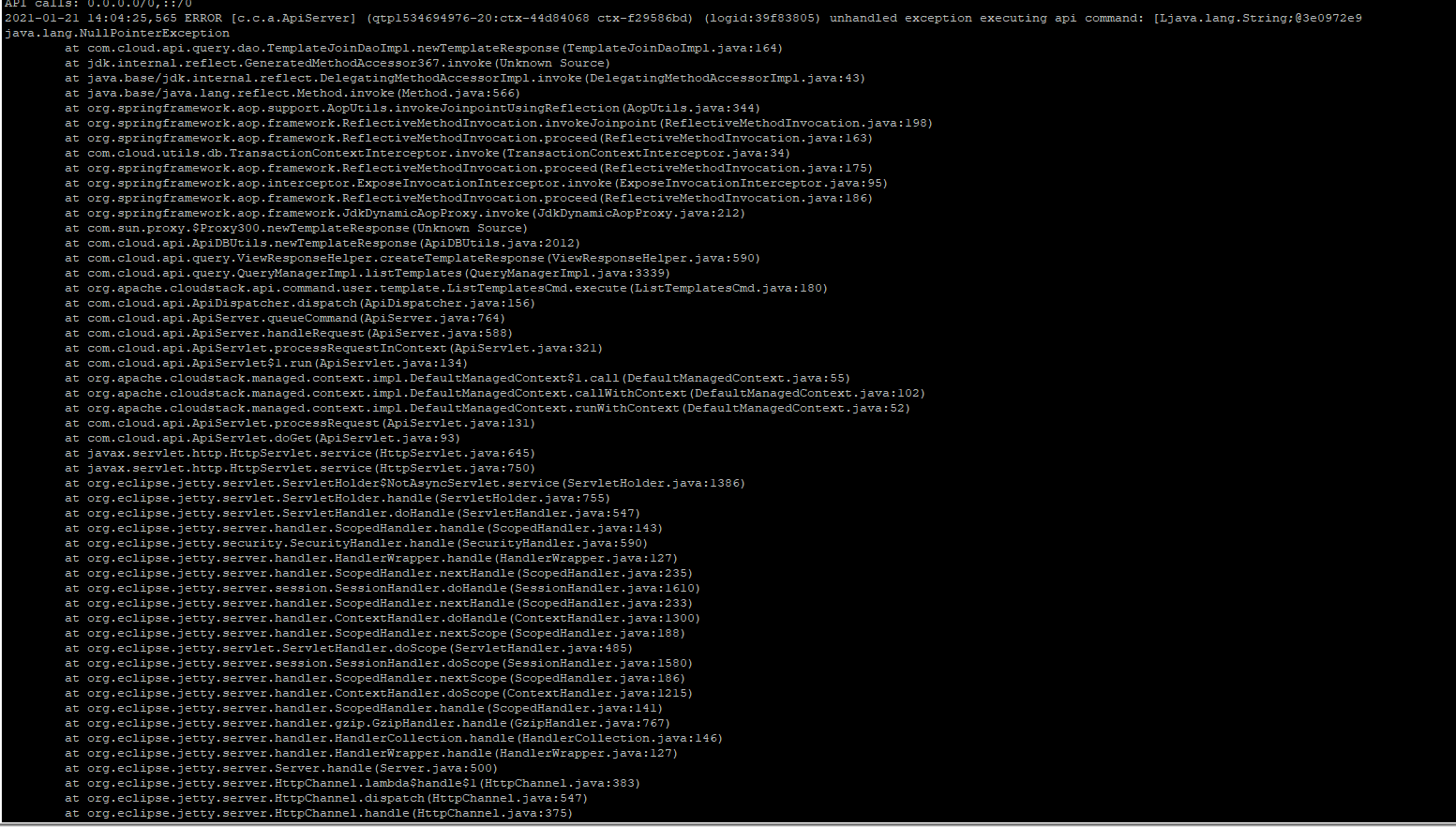 And the logs from cloudstack server