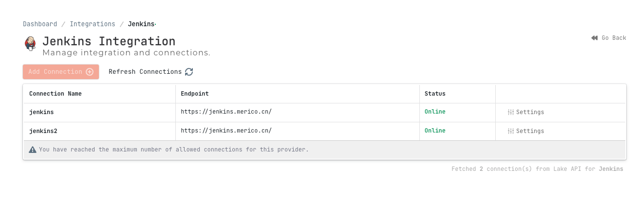 # Summary 1. update jenkins/api/connection to load and save through db not .env 2. update all entities with new field connection_id 3. update all tasks 4. add migration scripts 5. Replace GetDb with GetDal 6. Remove Concurrency parameter ### Does this close any open issues? fix #1978 ### Screenshots   -- This is an automated message from the Apache Git Service. To respond to the message, please log on to GitHub and use the URL above to go to the specific comment. To unsubscribe, e-mail: [email protected] For queries about this service, please contact Infrastructure at: [email protected]