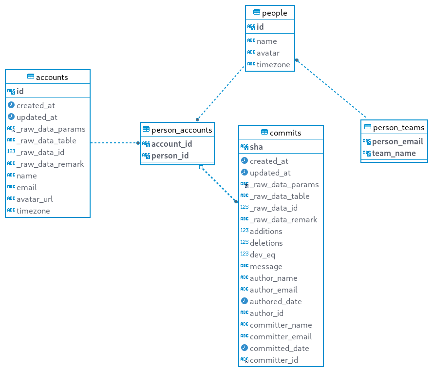 This is summary of our discussion:  ## glossary 1. table `users` to be renamed to `accounts` to avoid confusion, it had caused so many problems during discussion. 2. keep `people` as it is to represent a natural person, thus, a `people` could have multiple `accounts`, we agreed that `users` is ambiguous and should not be used anywhere in our database to avoid confusion. 3. table `person_accounts` exists, because `accounts` might be deleted by `subtask` from plugins, and `person_accounts` can only be entered by our user, in order to keep those data safe, we all agreed that they should be stored to a separated table even though they are actually One-To-Many relationship ## user cases ### aggregate `commits` by `person` **Proposal 1.1** ``` SELECT pa.person_id, count(*) as total_commits FROM commits c LEFT JOIN person_accounts pa ON (pa.account_id = c.author_email) GROUP BY pa.person_id ``` Sometimes, `commits.author_email` might be `[email protected]` due to privacy reasons, we all agreed that `gitextractor` should detect this kind of email (maybe configurable), and generate some sort FAKE author_email to make `commits` would always be distinguishable. **Proposal 1.2** However, I propose another approach: to use `commits.author_id` instead. ``` SELECT pa.person_id, count(*) as total_commits FROM commits c LEFT JOIN person_accounts pa ON (pa.account_id = c.author_id) GROUP BY pa.person_id ``` Rationale: 1. We have `author_id` `committer_id` in our `commits` table. 2. We all agreed that email is unreliable, and we should use `id` (either incremental or origin-key etc, we will discuss it later) ### how should a User setup this user mapping User download a `*.csv` , edit this file, upload, done -- This is an automated message from the Apache Git Service. To respond to the message, please log on to GitHub and use the URL above to go to the specific comment. To unsubscribe, e-mail: [email protected] For queries about this service, please contact Infrastructure at: [email protected]