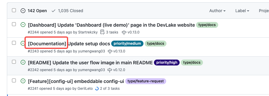 # Summary The prefix of documentation-type issues is too long, so I changed it from [Documentation] to [Doc] ### Does this close any open issues? No issue ### Screenshots  -- This is an automated message from the Apache Git Service. To respond to the message, please log on to GitHub and use the URL above to go to the specific comment. To unsubscribe, e-mail: [email protected] For queries about this service, please contact Infrastructure at: [email protected]