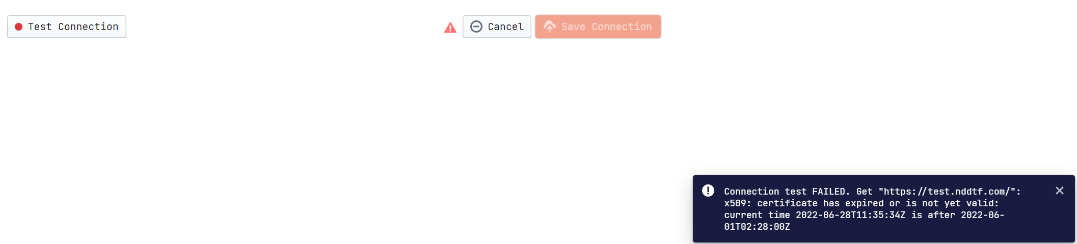 ### Search before asking - [X] I had searched in the [issues](https://github.com/apache/incubator-devlake/issues?q=is%3Aissue) and found no similar feature requirement. ### Description With the HTTPS certificate expires. The request will return an error as "x509: certificate has expired or is not yet valid:"  But in sometimes, it is hard to update the https certificate and beacuse of the Intranet or another reason.It is not necessary for user to ensure certificate is all right. So it is better to have a setting or config to force connection without HTTPS certificate check. ### Use case Use a setting or config. When we have to collect a data source with Flawed HTTPS certificate,there are no error sent out. ### Related issues _No response_ ### Are you willing to submit a PR? - [X] Yes I am willing to submit a PR! ### Code of Conduct - [X] I agree to follow this project's [Code of Conduct](https://www.apache.org/foundation/policies/conduct) -- This is an automated message from the Apache Git Service. To respond to the message, please log on to GitHub and use the URL above to go to the specific comment. To unsubscribe, e-mail: [email protected] For queries about this service, please contact Infrastructure at: [email protected]